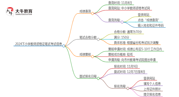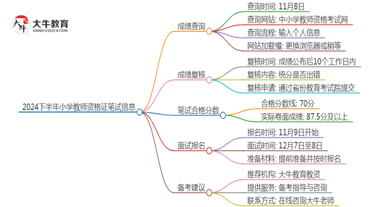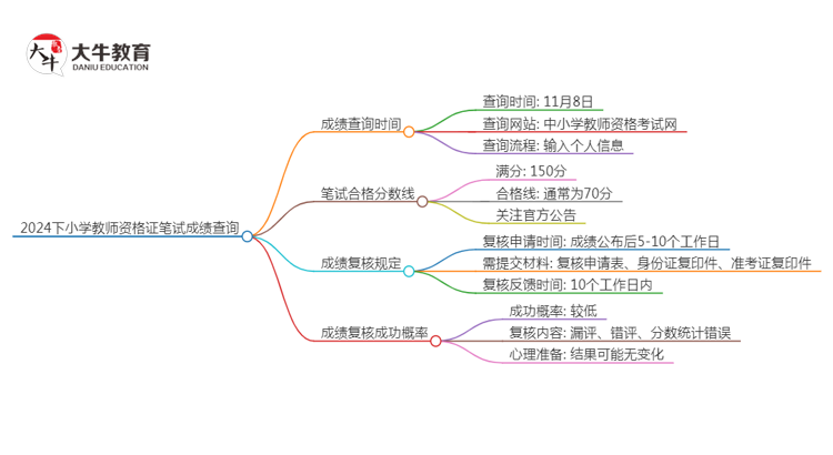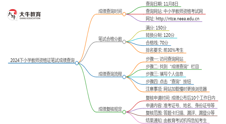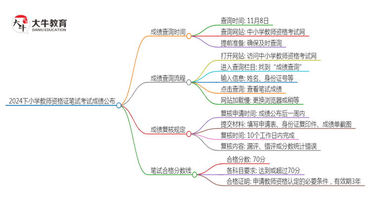 根据官方公告,2024下小学教师资格证笔试成绩将于11月8日公布。
