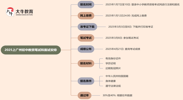 2025上广州初中教资笔试和面试的安排已经公布,以下是详细的时间表…