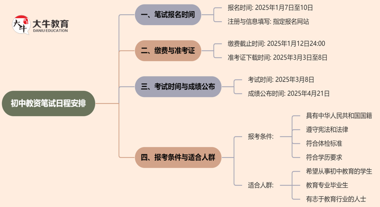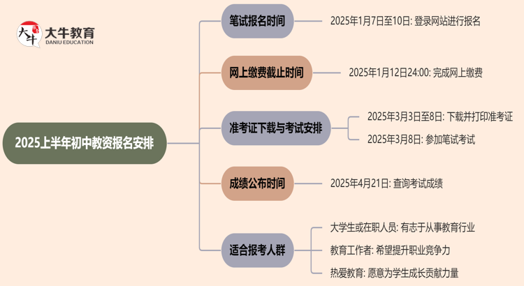 初中教资笔试2025年上半年报名时间为2025年1月7日至10日。为了帮助…