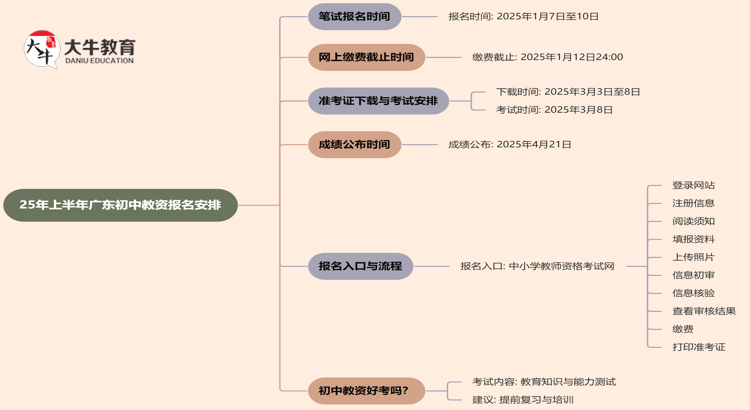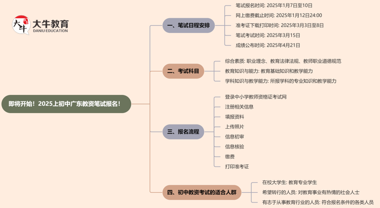 在2025年上半年,广东初中教师资格证(教资)的报名时间和相关安排…