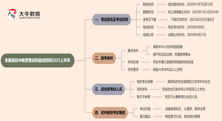 在2025年上半年,安徽省初中教师资格证的笔试和面试将为广大考生提…