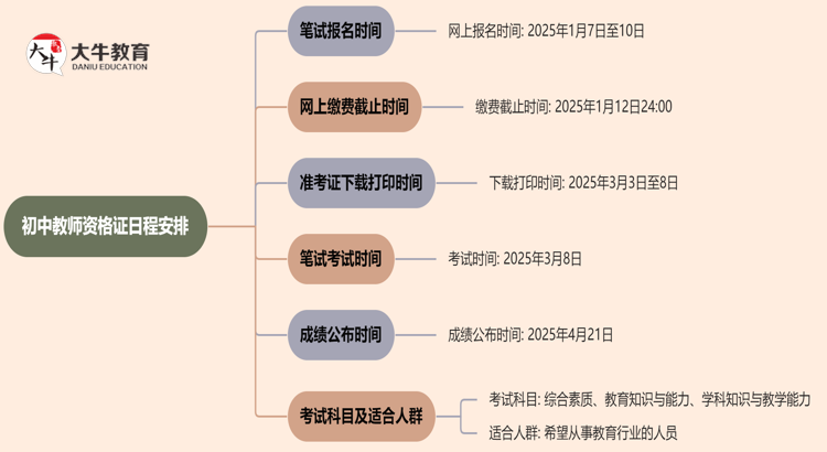 在2025年上半年,初中教师证考试的日程安排已经公布,参加考试的同…