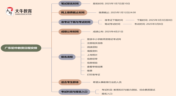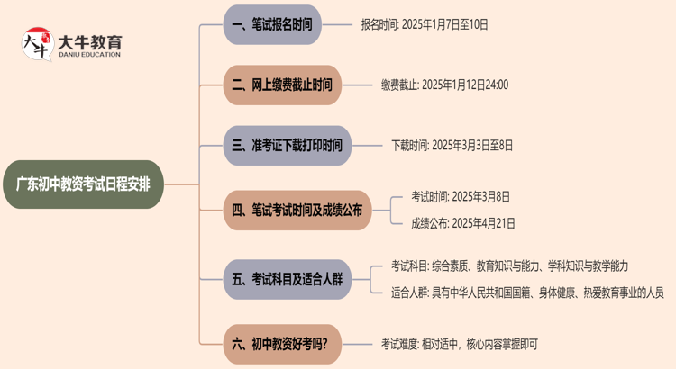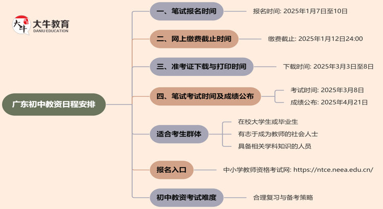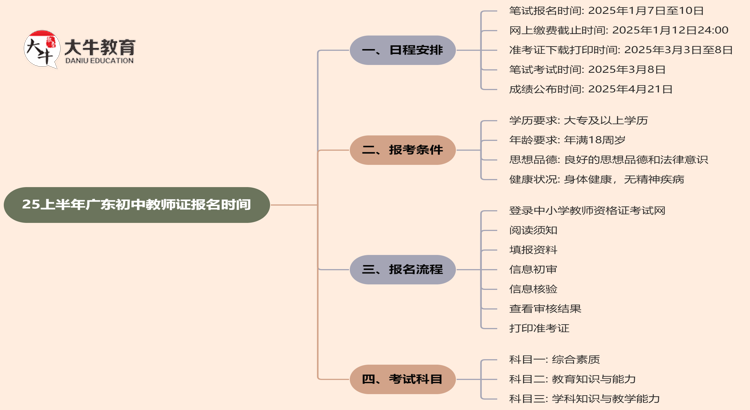 2025年上半年广东初中教资笔试的日程安排已经公布,以下是详细信息…