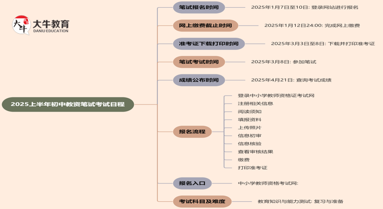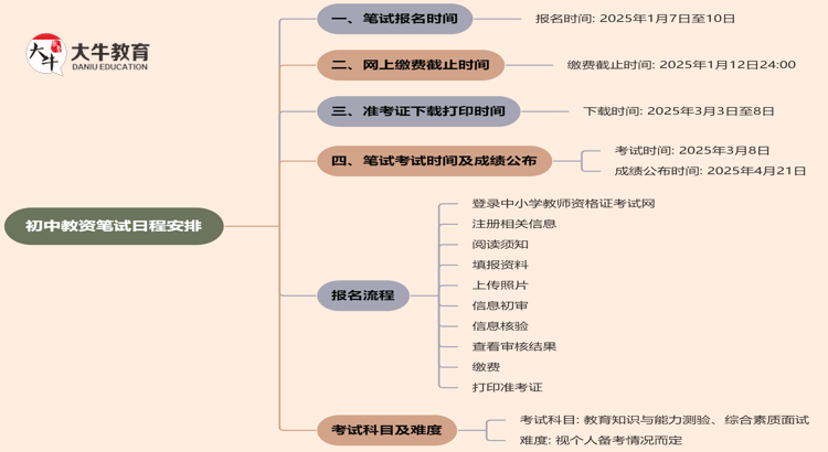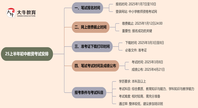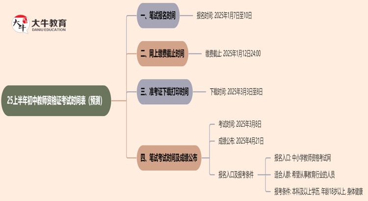 2025年上半年初中教师资格证考试的日程安排已经初步确定,以下是详…