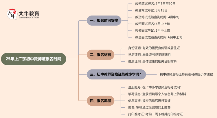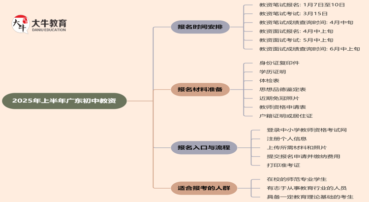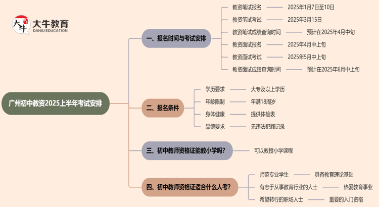 在广州,2025年上初中教师资格证的笔试报名和考试安排已经公布。对…