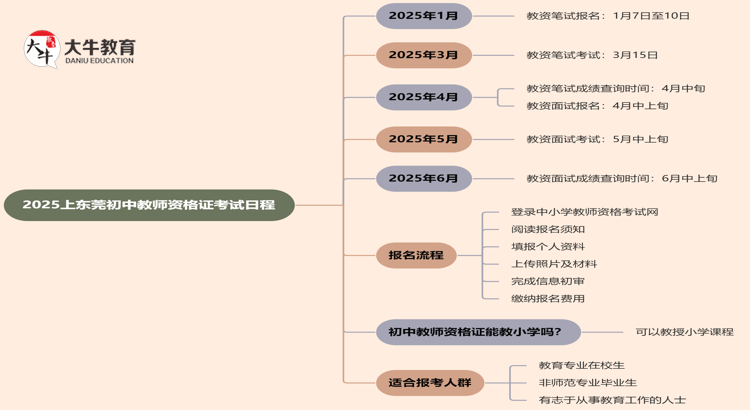 2025上东莞初中教师资格证考试日程已经公布,考生们可以根据以下信…