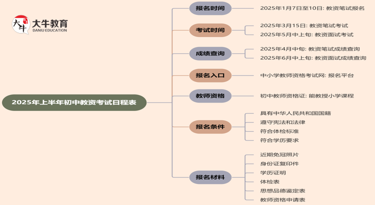 初中教资2025上半年报名时间即将到来,考生们需要提前做好准备,以…