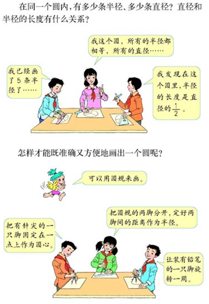 ①基础知识。本课中,让学生通过观察和动手操作,获得圆的相关知识,这样能够使学生牢固掌握。