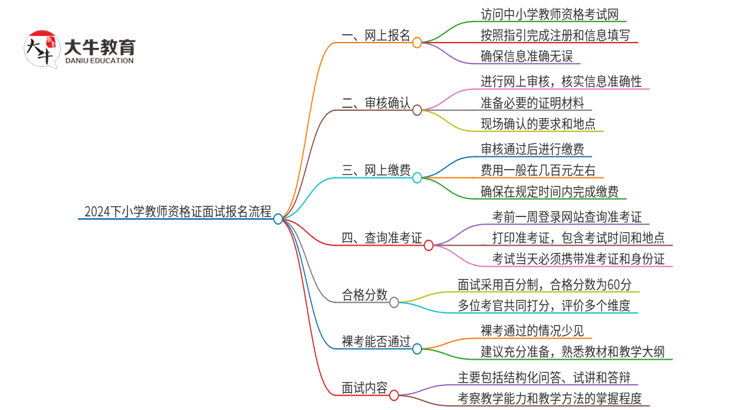 2024下半年小学教师资格证面试的报名流程包括网上报名、审核确认、…